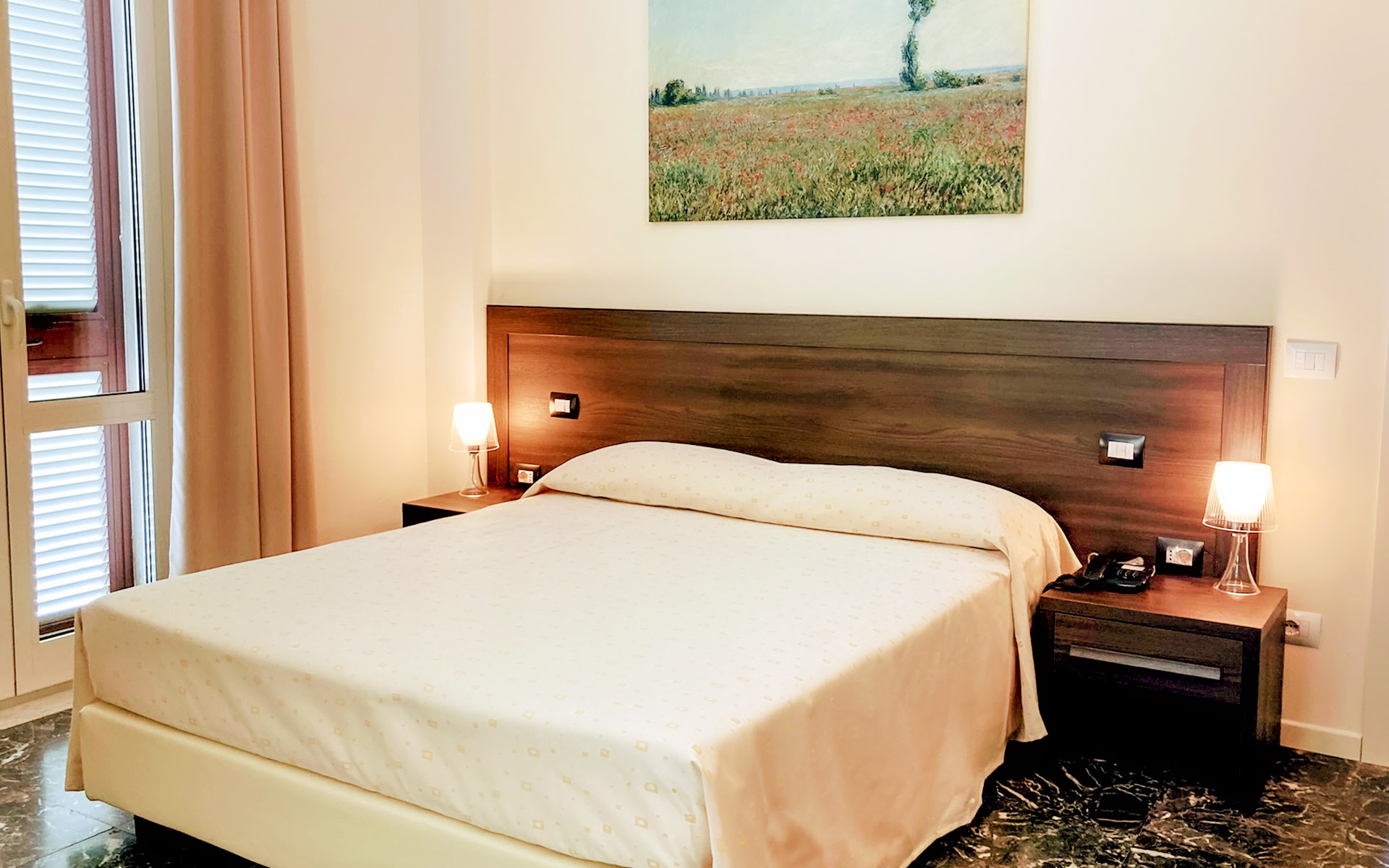 Le camere matrimoniali dell’Hotel Belvedere sono costruite tutte in uno stile moderno che unisce eleganza e comfort, offrendo un’esperienza di soggiorno unica e piacevole. Ogni camera è rifornita con una varietà di servizi pensati per garantire il massimo del relax e della praticità. Gli ospiti possono godere di una TV a schermo piatto per i momenti di svago, una cassaforte per conservare i propri oggetti di valore in totale sicurezza e un minibar ben fornito per gustare una selezione di bevande e snack a qualsiasi ora.
